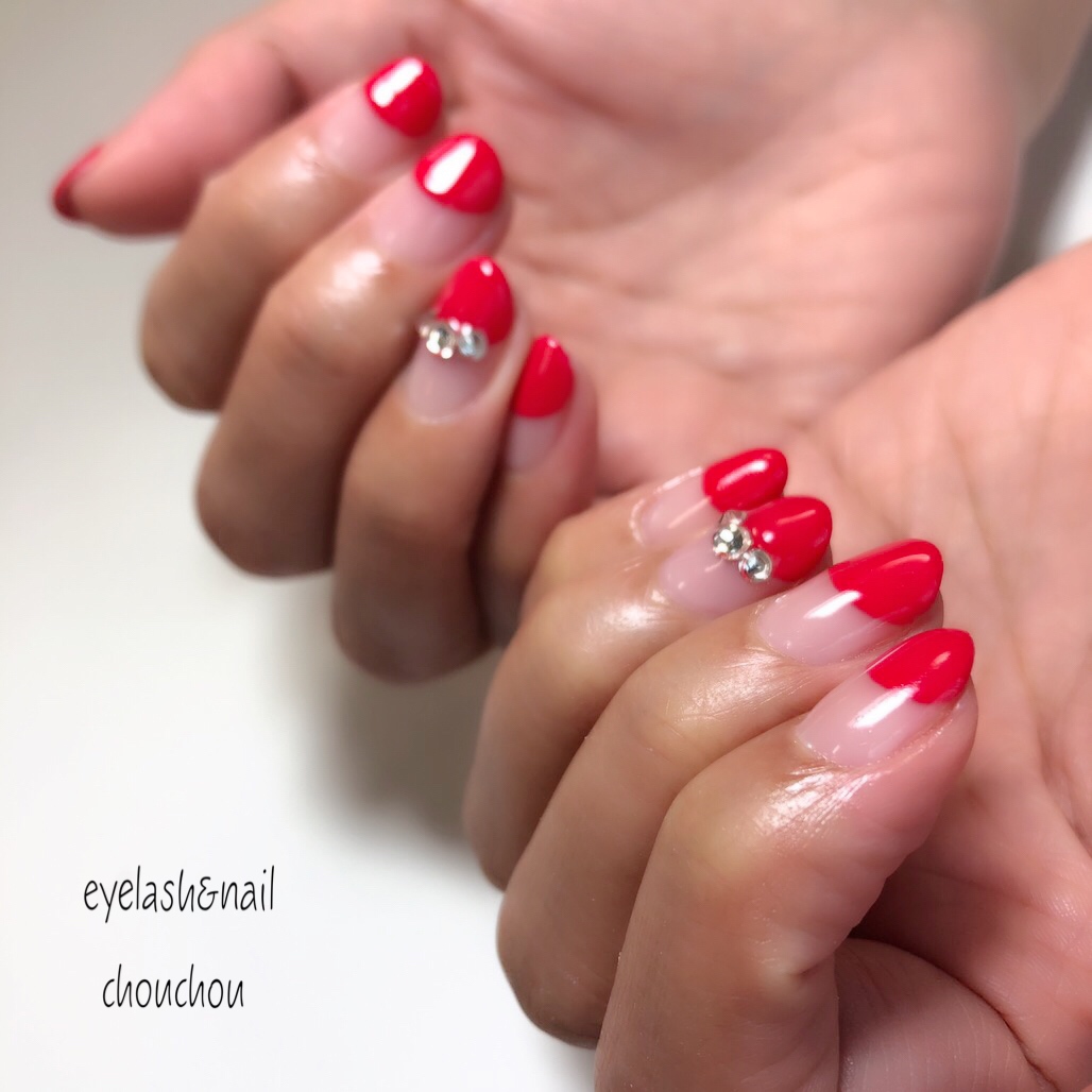 ↑真っ赤なバルーンフレンチに大きめのパーツを乗せて✨